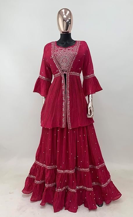 - Top Fabric : Chinon With Santoon Inner, Jacket Fabric : Chinon, Bottom Fabric : Chinon, Dupatta Fabric : Chinon