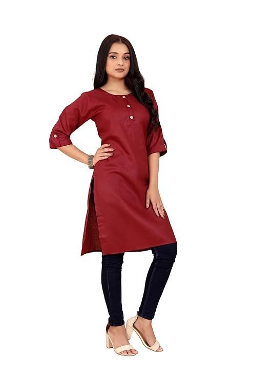 weltpocket Women’s & Girls’ Cotton Blend Kurti with 3/4th Sleeves